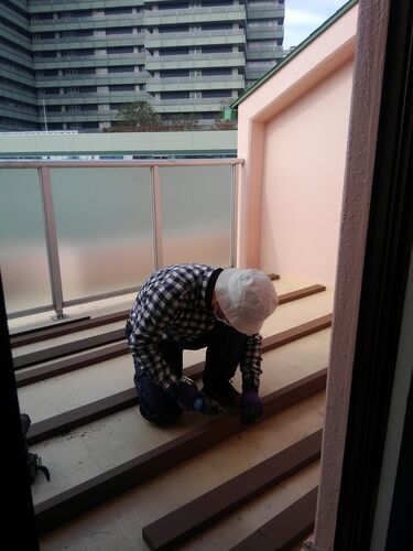 最上階のマンションのテラスにウッドデッキを制作。 人工木材を使用しましたが、この樹脂木の長所に欠点が施工しているとわかります。 樹脂木は腐らないですね。だから虫もつかないと思います。 天然の木材みたいに、ささくれもないのではないでしょうか。 …