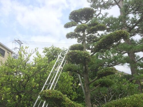 がっちり刈り込んできたと思われるマキを鋏み透かし剪定で仕上げます。 とりあえず絡み枝と太い枝を切り、重なっている玉を落とします。 お空が透いて見えるぐらい切ると優しい感じではないでしょうか。 徐々に綺麗にしていきたいですね。 春田造園のホーム…