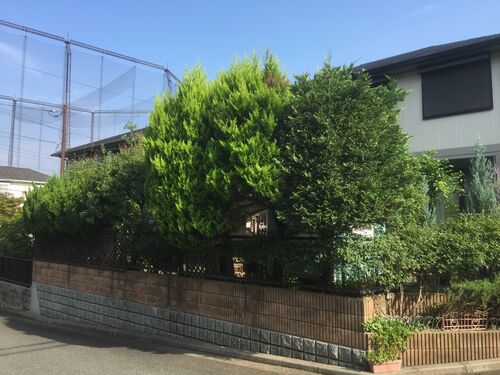 コニファーが並ぶ生垣に樹木は長年の刈り込みで大きくなりました。 今後は極力小さくしていくにあたり鋏み透かし剪定で枝を抜いていきます。 刈り込み剪定は大体は枝が絡み枯れ込んでいます。絡み枝をほどき枯れ枝を切るだけで最初はスッキリします。日が入…