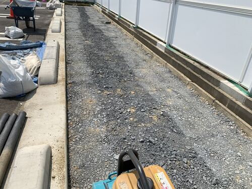 コンクリートの下地は砕石をしっかりと転圧します。 割れ防止のために伸縮目地を均等にいれます。 コンクリート基礎から鉄筋アンカーで固定しメッシュを編み込みます。 コンクリート打設開始。この時期にしては気温が高くコンクリートは柔らかめにしました。…