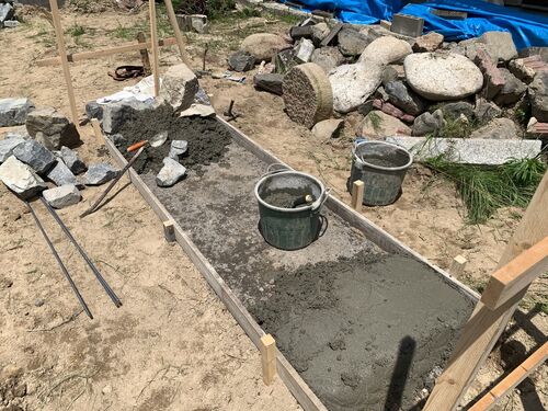 庭のポイントに石壁をつくるらしい。 イメージは話を聞いて、そんな感じで、なるほどね。 それでは始めましょうか。 やや城積みのように反りを入れて。 こんな感じかな。 細かいすきまも石を詰めていきます。 石積み楽しいですか?と聞かれ楽しいですよと返…