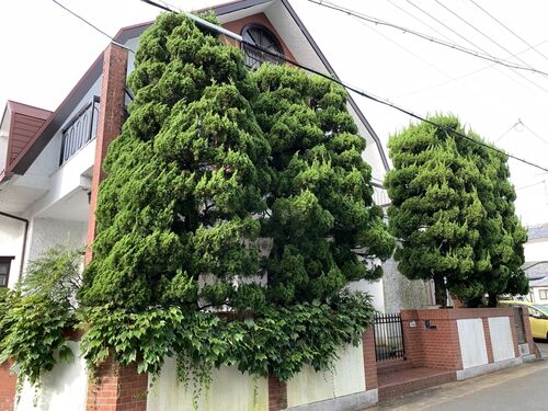 立派なカイズカイブキだな、、、 コンパクトにしたいと思います。 ん、こんな感じかな。 頭もとばしていこうかな。 電線よりも下のほうがいいよね、 ん、こんな感じかな。 しかしカイズカイブキにもこんなに毛虫がつくことがあるんですね、、、 気持ち悪いな…