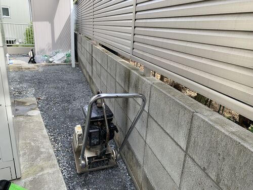 地盤はしっかり転圧し固めます。 今回は固まる土舗装ですが、コンクリート土間も同じで地盤は砕石を入れてしっかり転圧した方が良い。それでも経年劣化でクラックは入ってしまいますからね、 個人的に細かい土舗装まで入れるとけっこうしているんですよね。 …