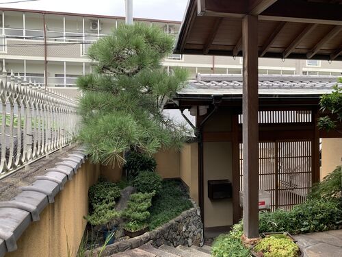 このあたりの生垣はほとんどカイズカイブキです。 そしてほとんどが鬼葉(痛い葉)になり何とも言えない丸みがかかっています。 つるんつるん刈り込む以外ありませんね、、、 トガにマツにツバキにサザンカ。 大体周りの庭も同じような感じです。 せめて玄関…