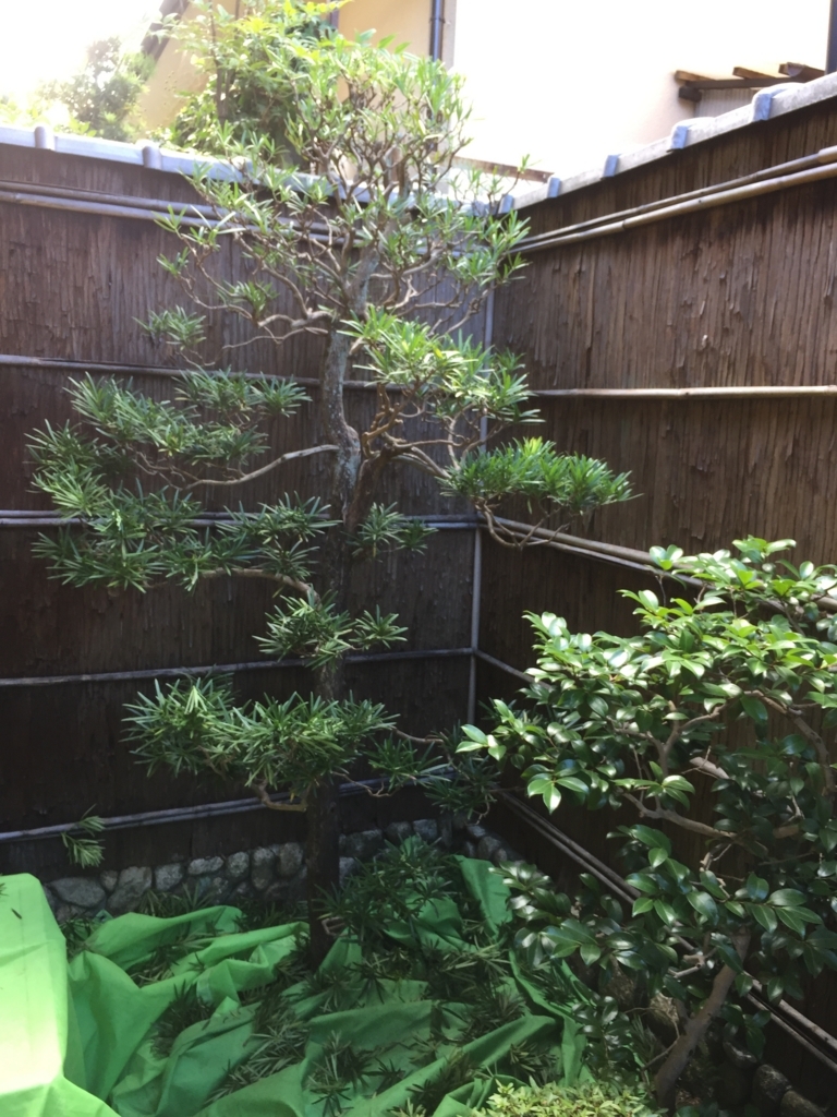 マキの葉むしり剪定です。剪定の大切なことは剪定の方向、方法、枝の残し方です。