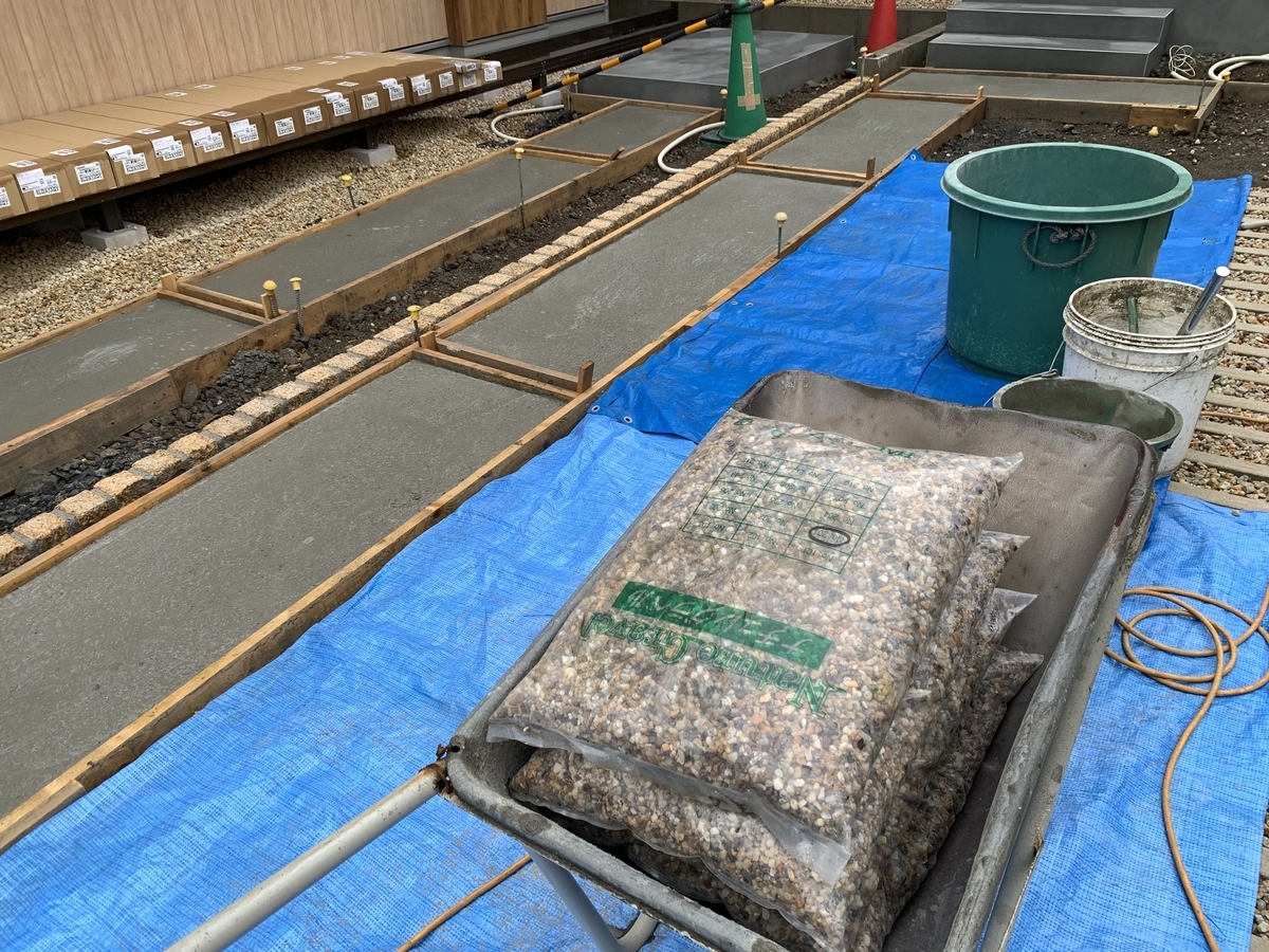 ダーッといきましたが洗い出し仕上げは難しい施工ですよ。